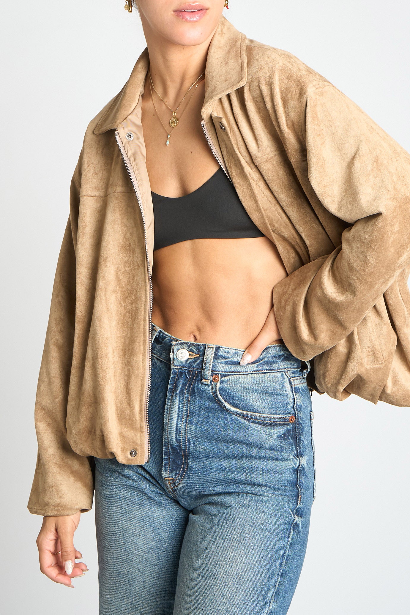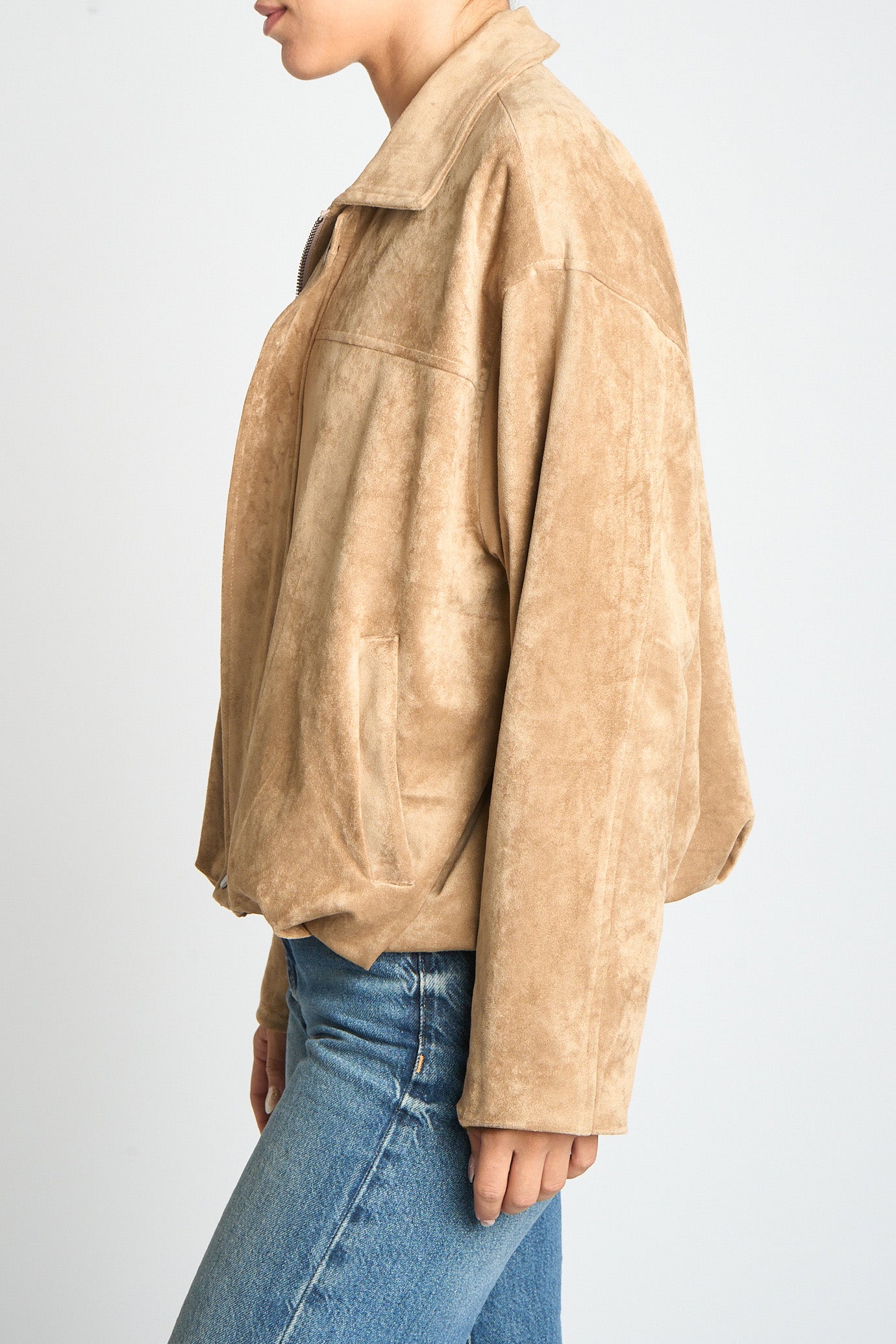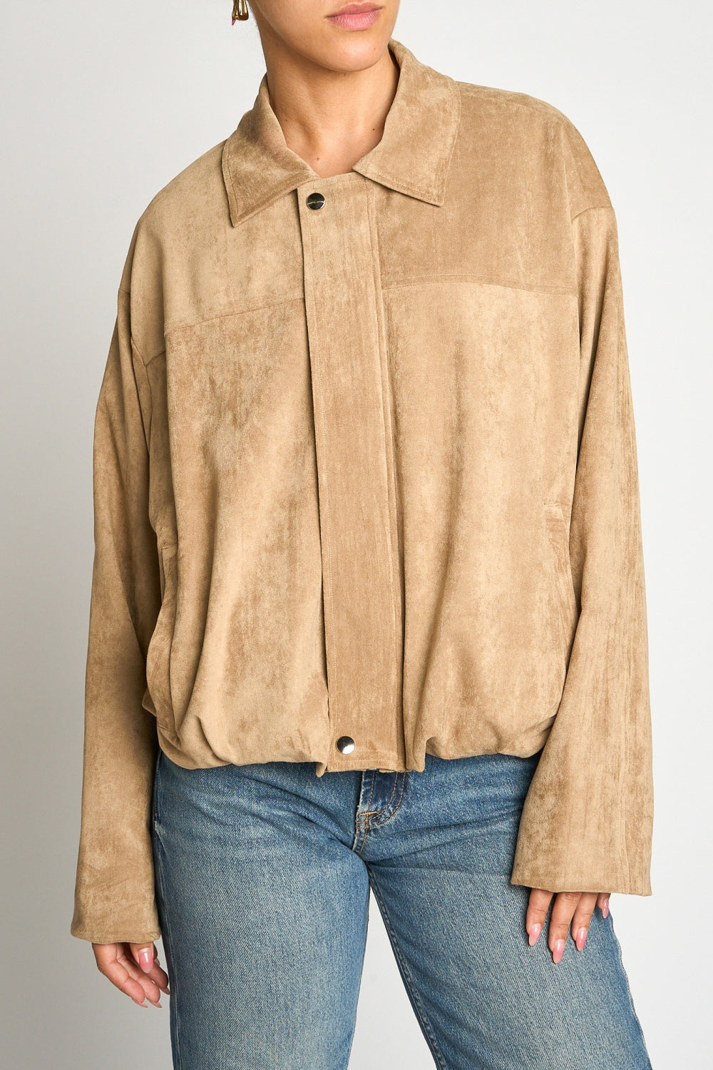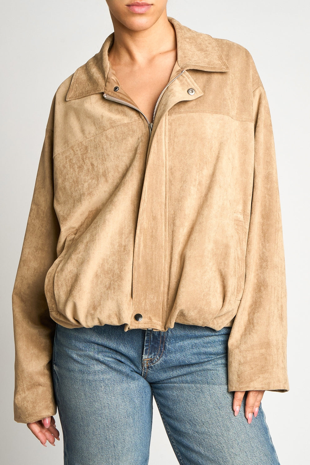FAUX SUEDE PLEATED BOTTOM JACKET