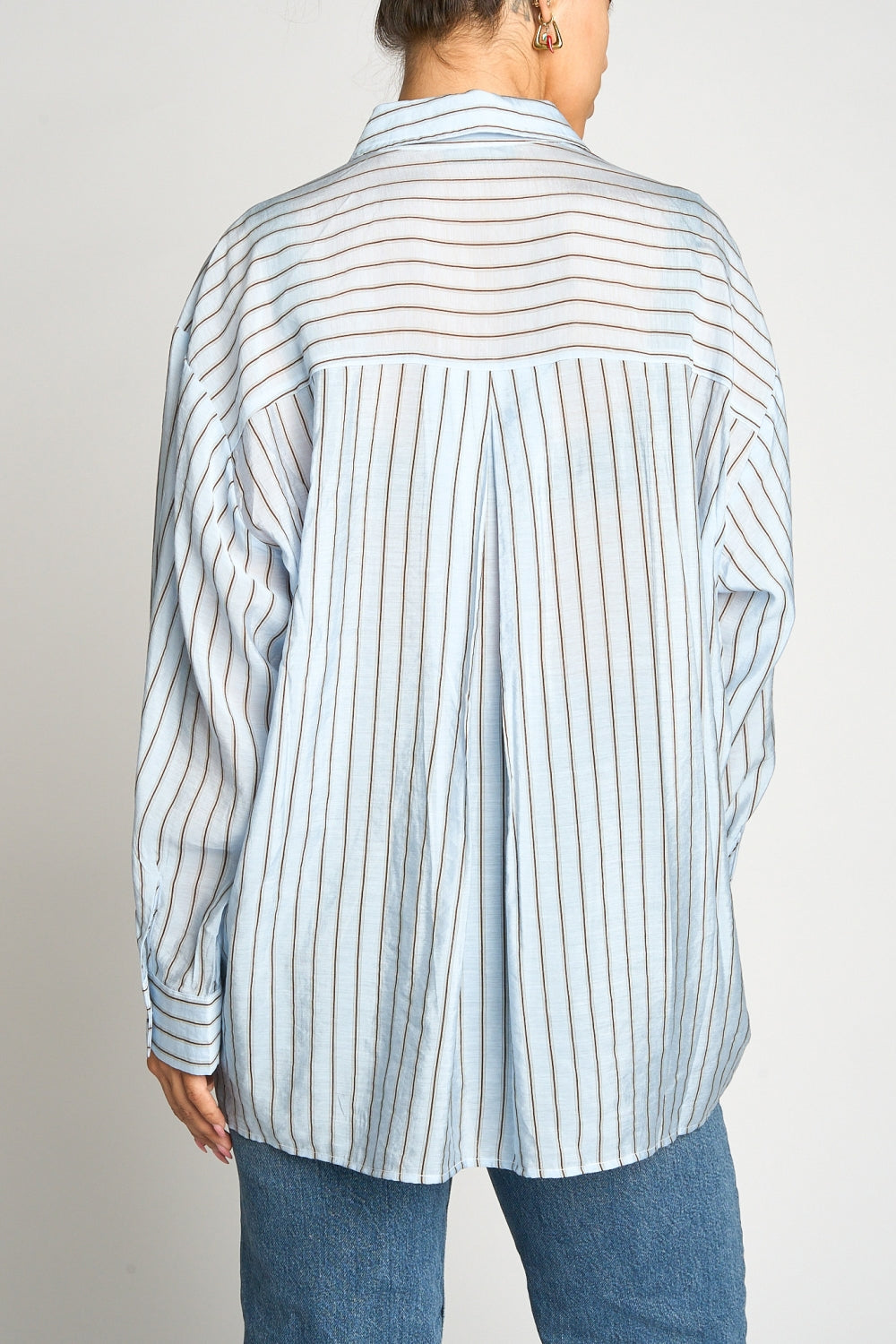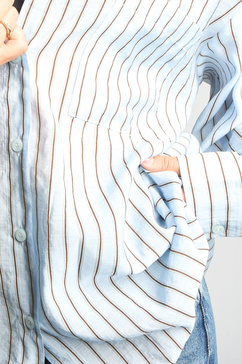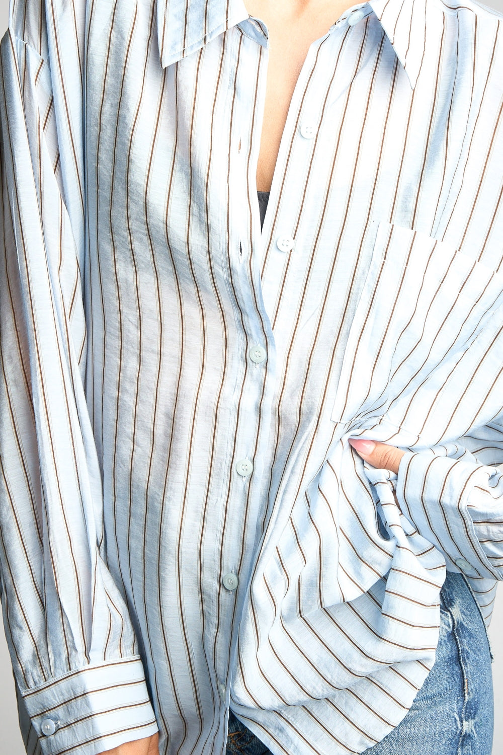 STRIPED BUTTON DOWN SHIRT WITH FRONT POCKET