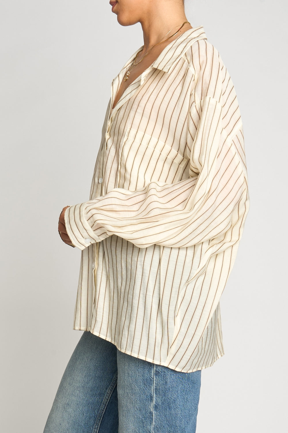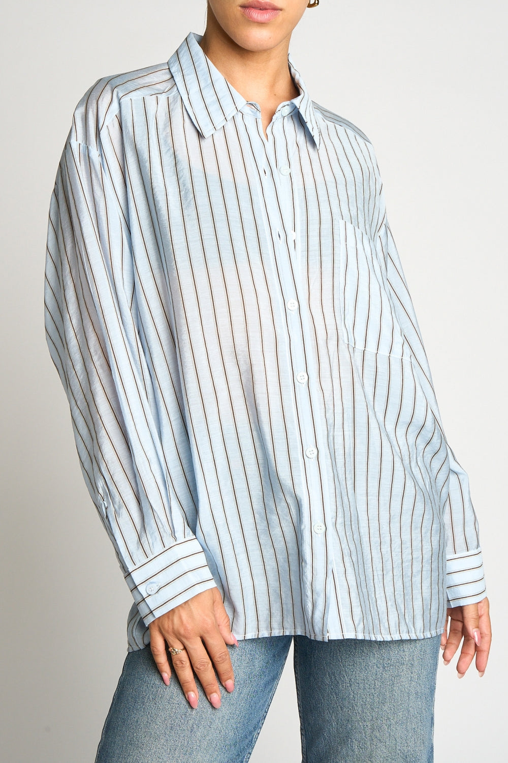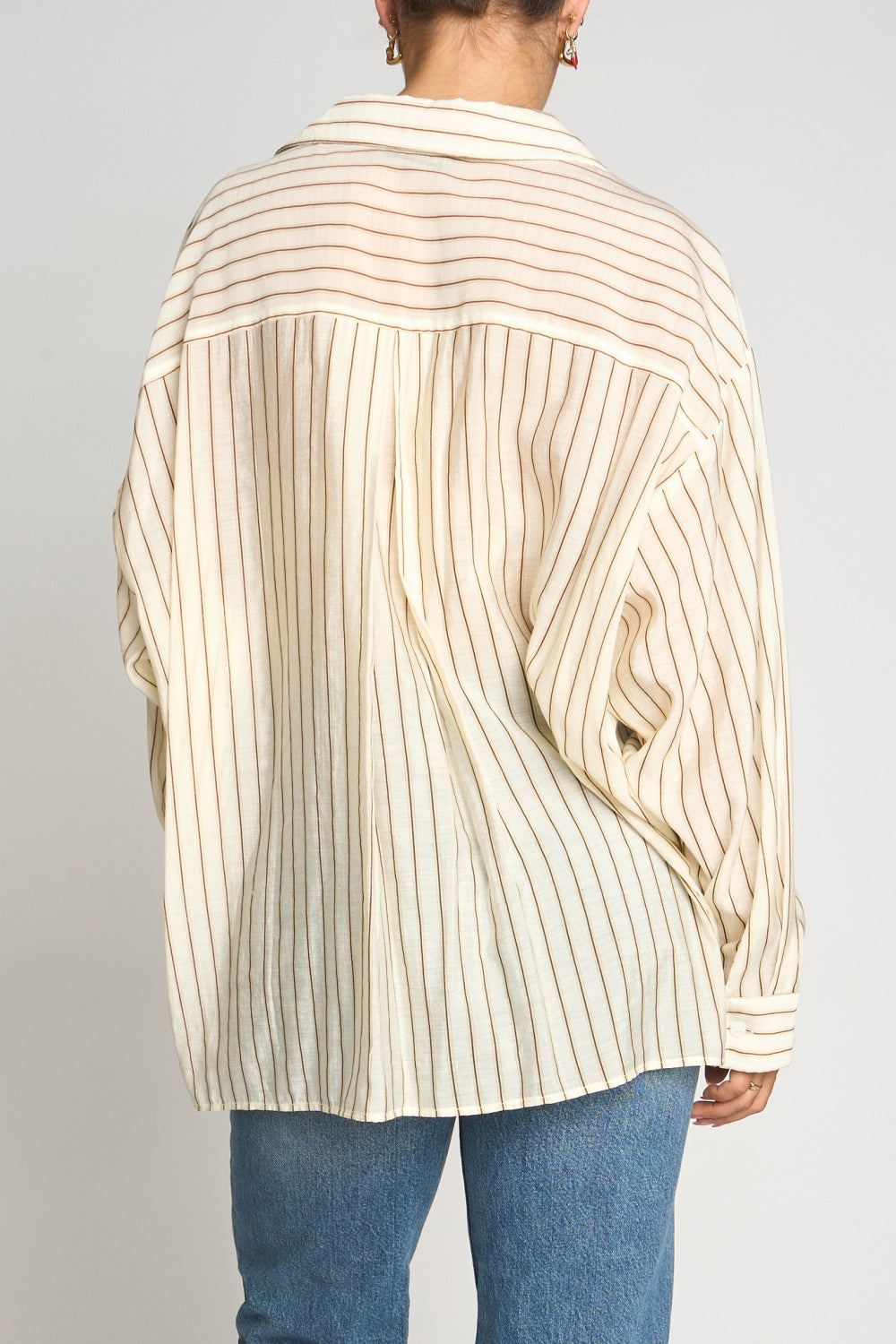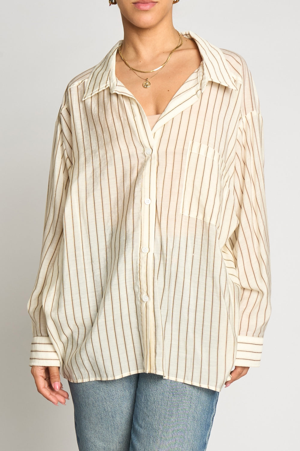 STRIPED BUTTON DOWN SHIRT WITH FRONT POCKET