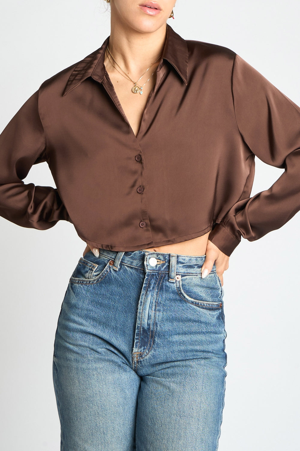 Home / Shop / NEW ARRIVALS / CROPPED SATIN BLOUSE