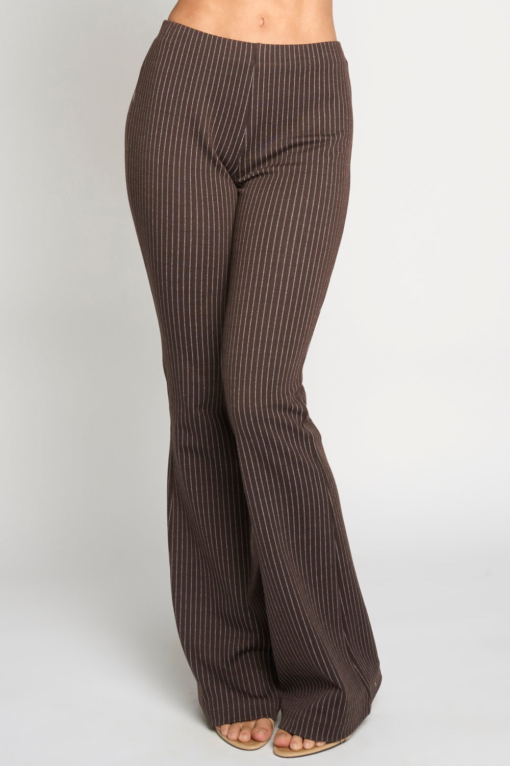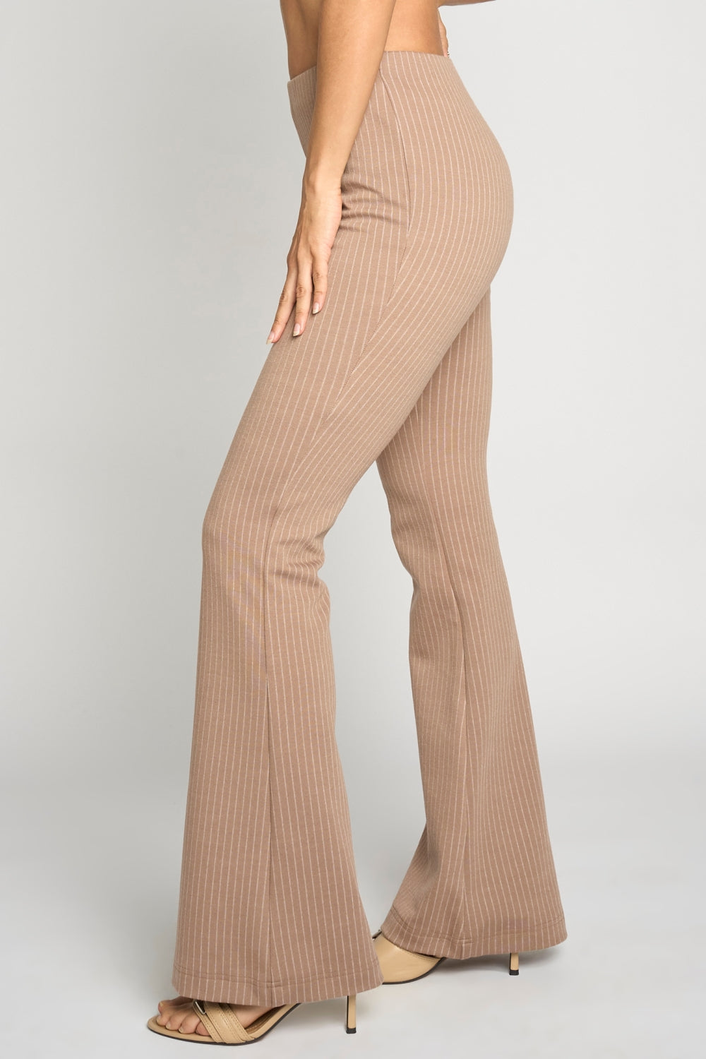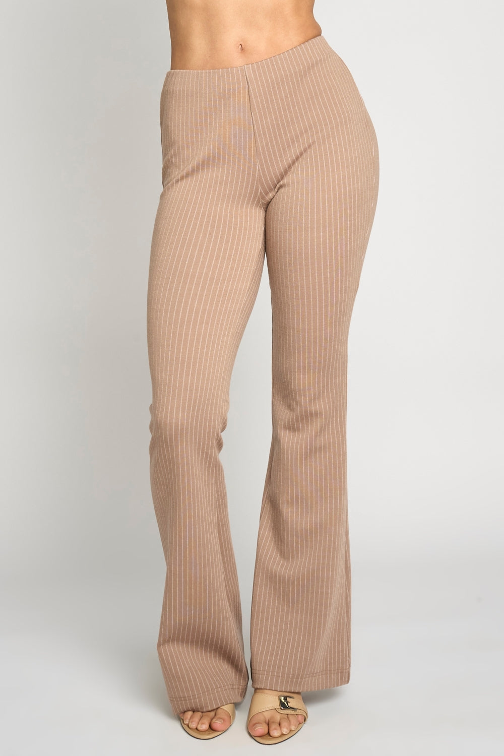 KNIT PINSTRIPED BELL BOTTOM PULL ON PANTS
