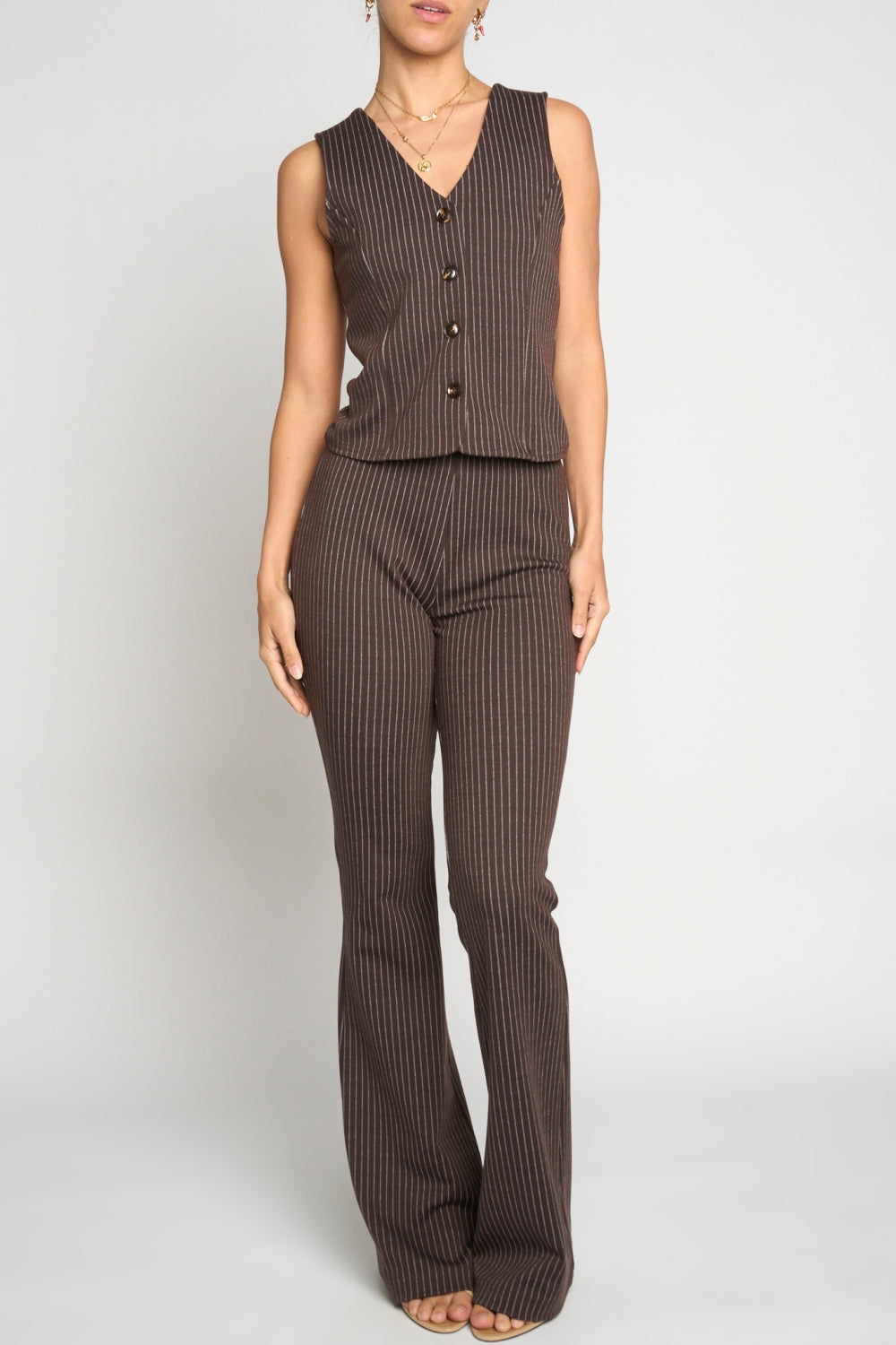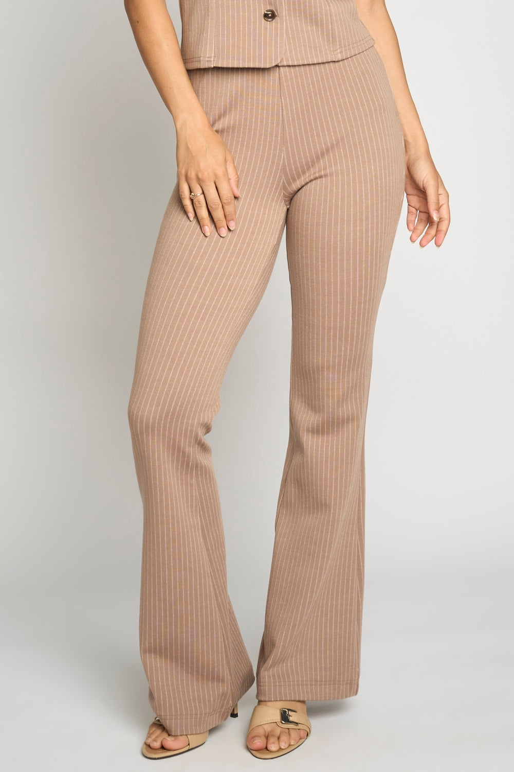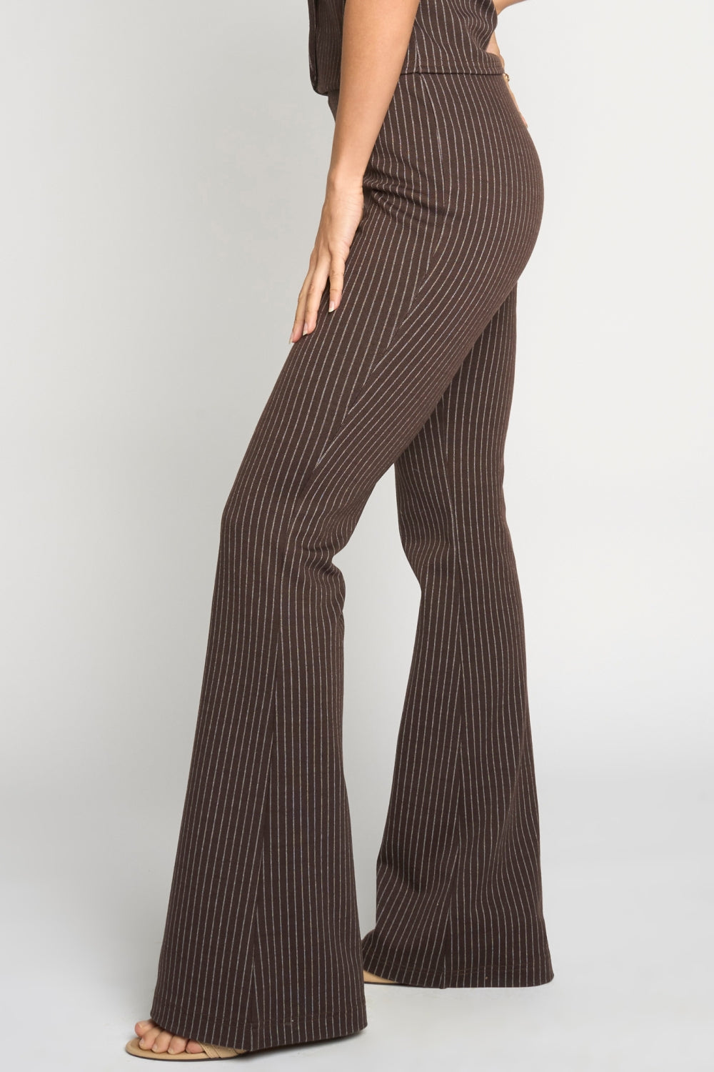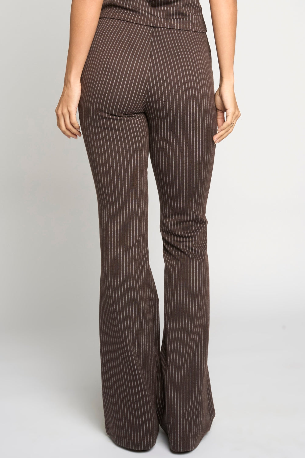 KNIT PINSTRIPED BELL BOTTOM PULL ON PANTS